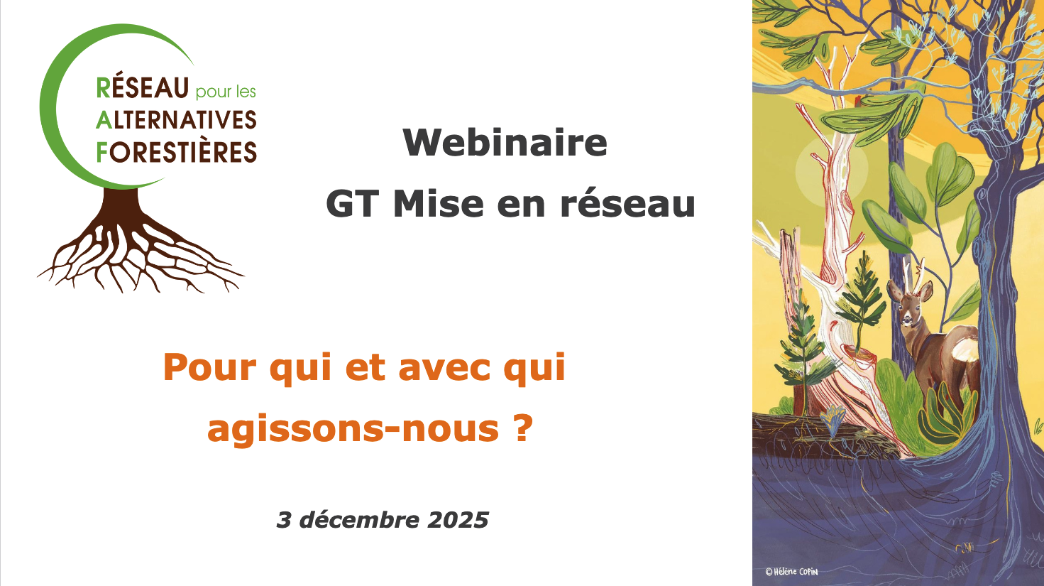 2. En tant que réseau national, la raison d’être du RAF est de développer et fédérer des alternatives solidaires, citoyennes et écologiques pour répondre à la dégradation des écosystèmes et à la précarisation des conditions de travail en forêt.