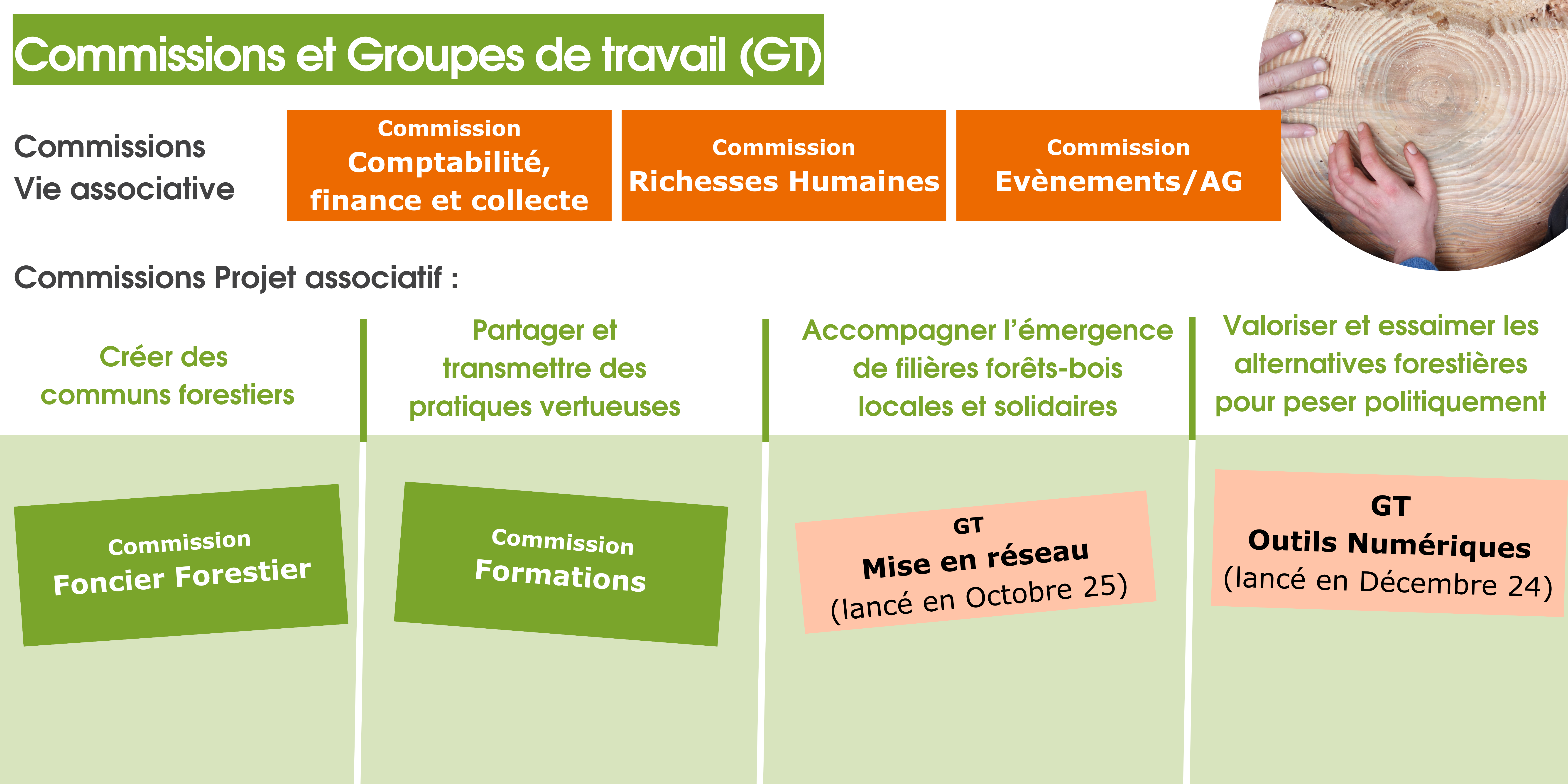 Au 2e semestre 2025, voici les Commissions et GT existant·es :