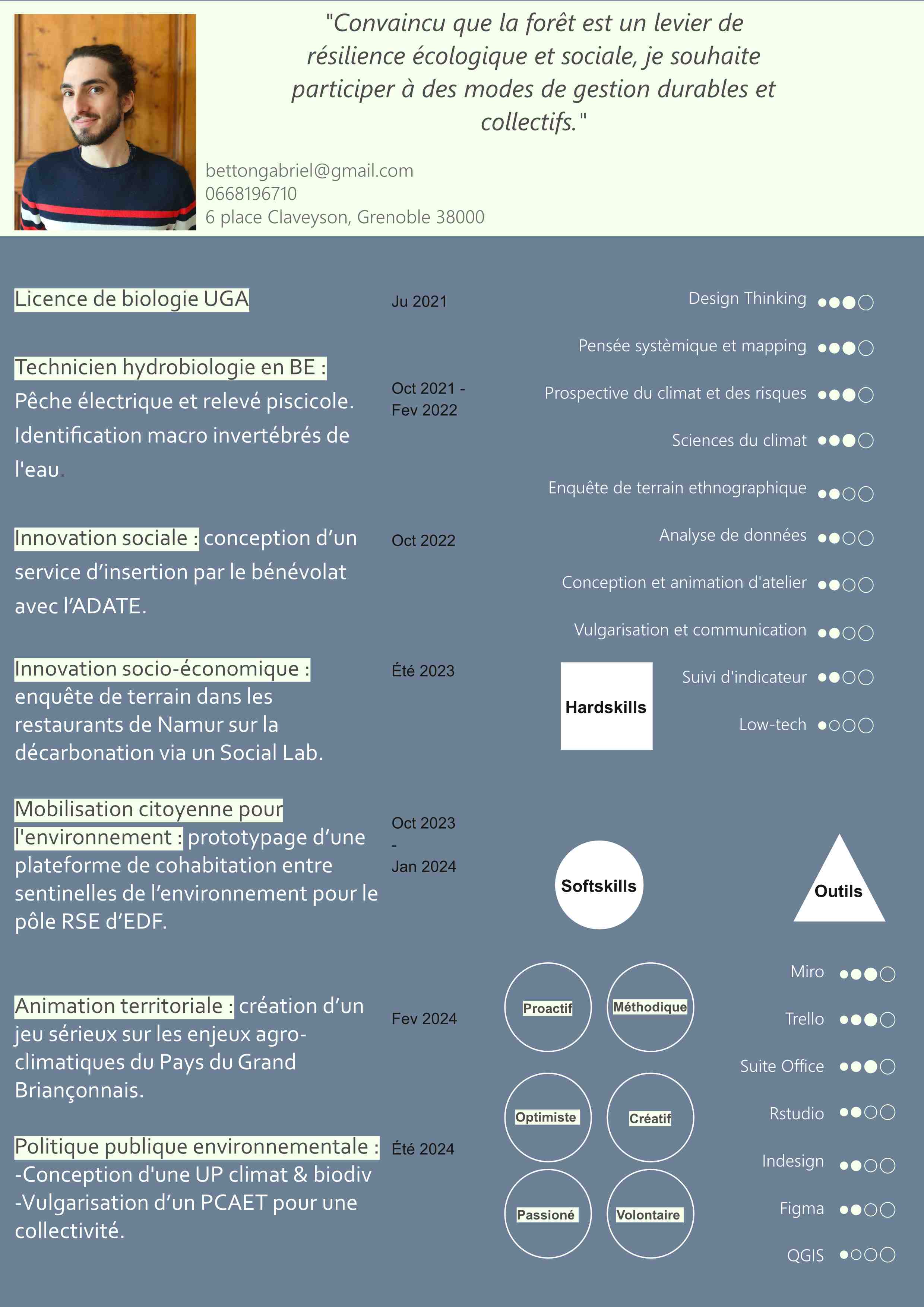 Je suis à la recherche d’une alternance en gestion forestière ou dans la filière forêt-bois à partir de septembre 2026. Après un Master en design de transition à l’IAE de Grenoble et une licence de biologie, je souhaite aujourd’hui me spécialiser techniquement dans le domaine forestier afin d’ancrer mon parcours pluridisciplinaire dans un métier concret, tourné vers la gestion du vivant et des ressources naturelles. J’envisage de poursuivre soit en Licence professionnelle “Gestion et commercialisation des produits de la filière forestière” (UGA – Valence), soit en BTSA Gestion Forestière (Université Savoie Mont Blanc), en fonction de l’opportunité d’alternance que je trouverai. Mon intérêt porte particulièrement sur la gestion durable des forêts, les dynamiques écosystémiques, la transition des pratiques sylvicoles et la place des approches collectives et territoriales dans la gouvernance forestière. Je cherche une structure engagée — association, coopérative, bureau d’étude, collectif ou acteur local — qui souhaite accueillir un apprenti motivé, curieux, rigoureux et prêt à s’investir pleinement dans ses missions. Disponible pour échanger, je suis ouvert à toute proposition ou mise en relation dans la région grenobloise ou plus largement en Rhône-Alpes.