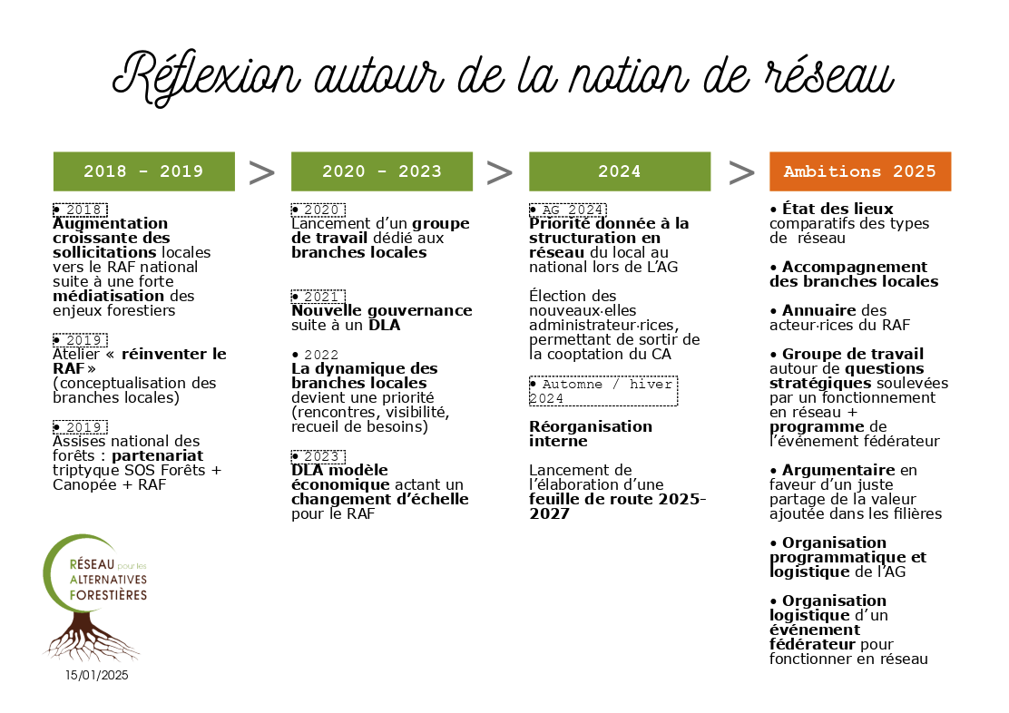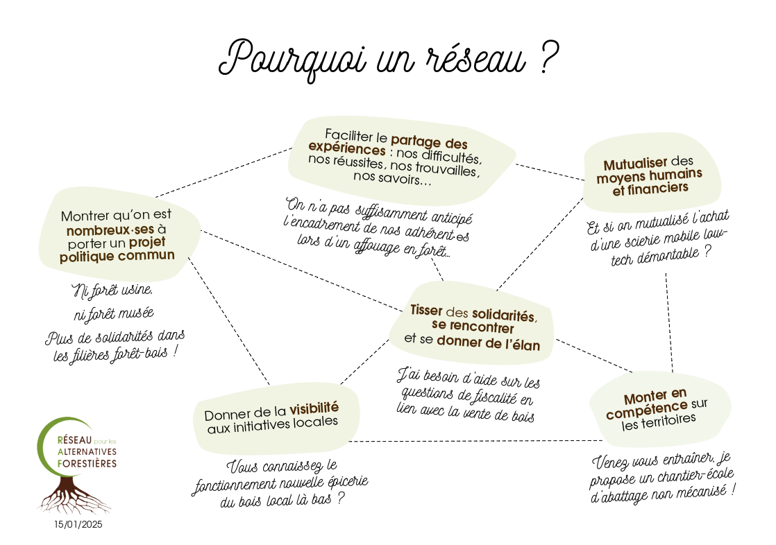 - En 2024, les adhérent·es du RAF donnent la priorité à la structuration en réseau des alternatives forestières du local au national.